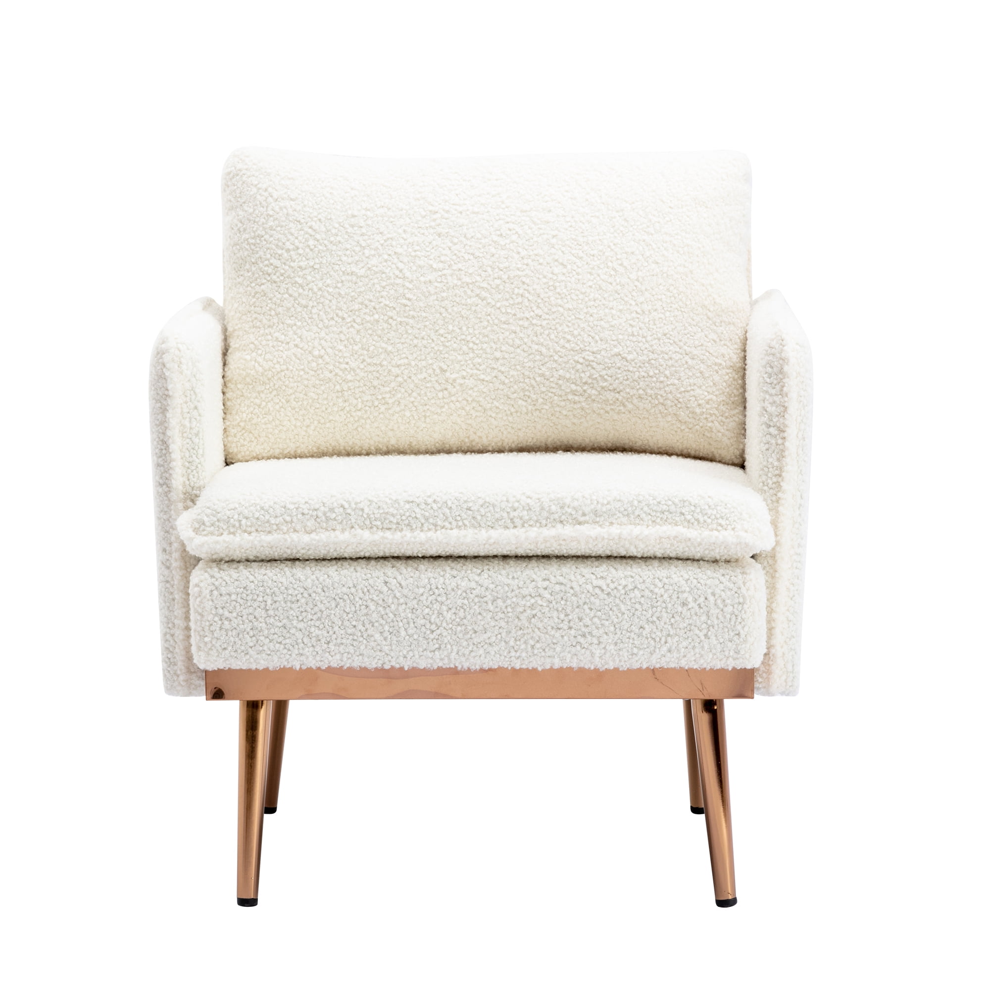 Homefun White Accent Chair For Living Room Sherpa Chair For Bedroom Cute Single Sofa Chair With 2 Removeable Cushions Comfy Armchair With Golden Metal Legs And Anti Skid Pads Walmart Com